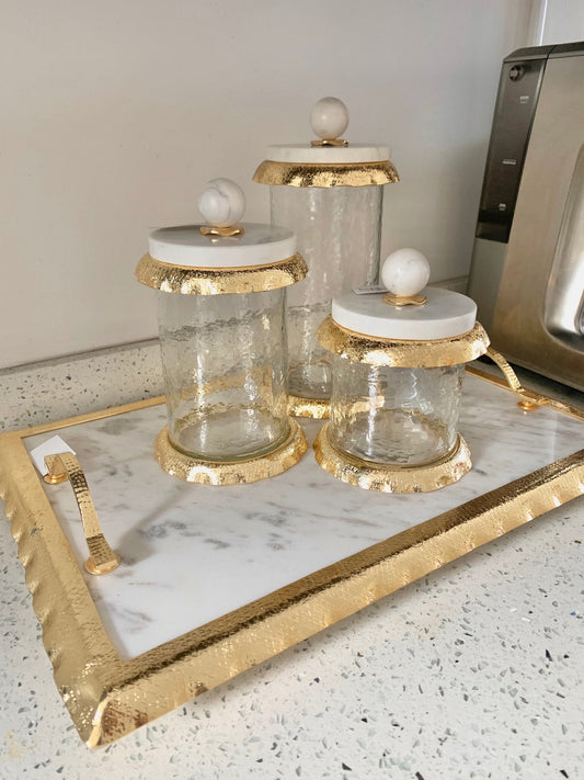 - A natural and solid marble jar with gold circle top edge.