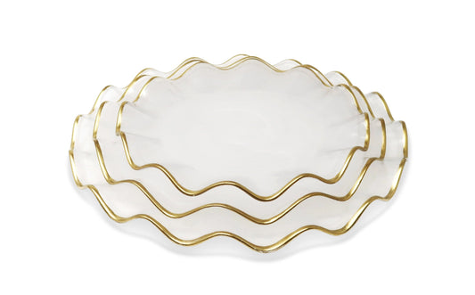 This stunning Cake Stand in Alabaster white With Gold Trim will be the star of your celebrations! It will beautifully display your cake with flair. Its delicate alabaster white and transparent design will make your gorgeous table or table cover shine. The gold trim brings a timeless classic feel.