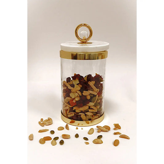 Elevate your organization with our canister featuring a marble lid and a stylish ball knob.