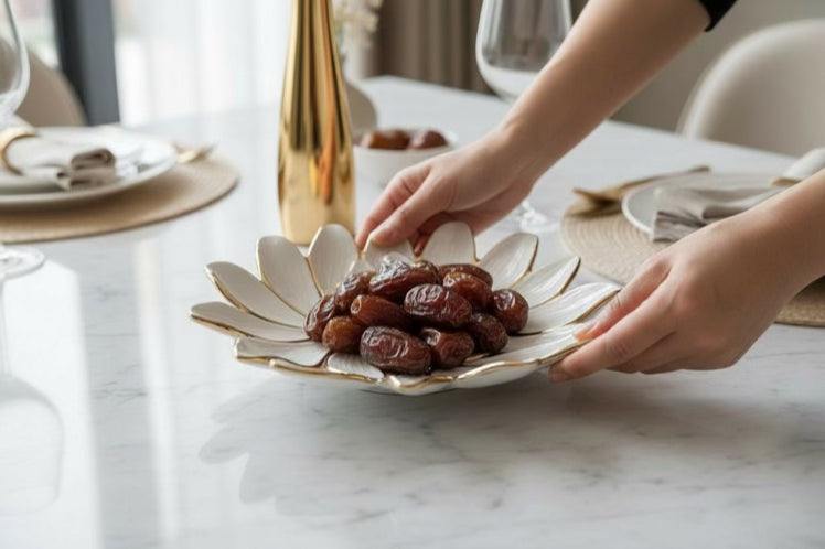 White Porcelain Flower Plate with Gold Edge 13"